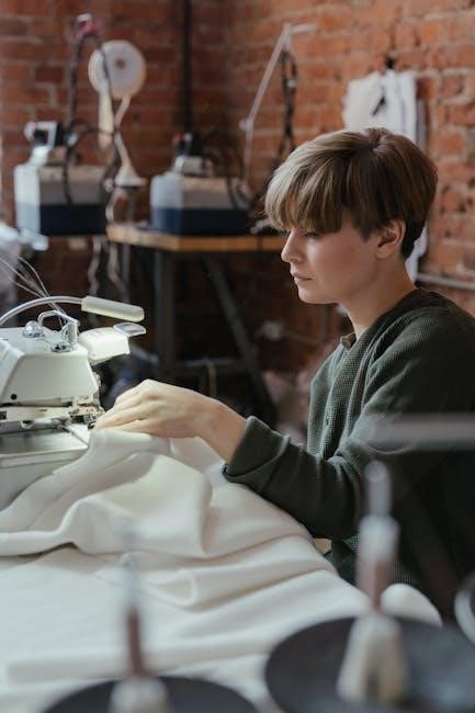 Maintain a steady pace and avoid pulling or pushing the fabric; let the machine feed it through․ For a neat finish, backstitch at the beginning and end of the seam by using the reverse stitch function․ Refer to your manual for detailed illustrations and troubleshooting tips․
